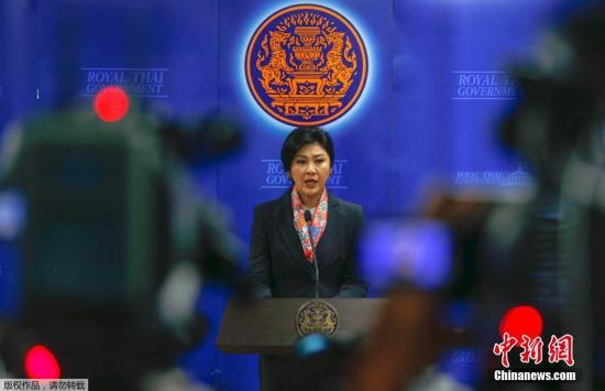 资料图:当地时间2014年5月7日,泰国曼谷,遭解职的泰国前看守政府总理英拉举行新闻发布会,对过去2年中支持其政府的支持者表示感谢。当天,泰国宪法法院公布裁定,英拉滥用职权罪名成立,将被解除总理职务。