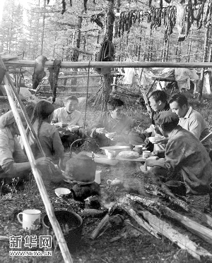 1981年秋,刘云山(中)作为新华社记者在内蒙古敖鲁古雅采访时与鄂温克猎民促膝交谈 新华社发