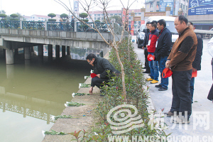 在杜光华落水处,人们摆上了白菊花。
