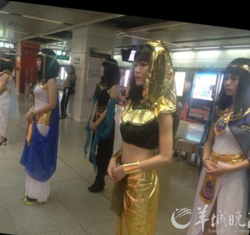 24日下午2时30分许,一名身穿古装的“埃及艳后”出现在深圳地铁罗湖线,当即在车厢内引起了不小的骚动。“艳后”自称此番来华是为了寻找被当做展品即将在深圳展出的“古埃及王子”。