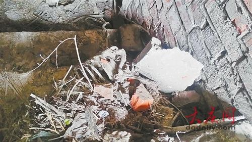 记者上前看到,距洞口约10米处,一堆白骨掺杂在几个破碎的砖头之中,旁边还有一堆枯草。