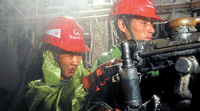 在雀儿山动土,有“三高三低”——海拔高、地应力高、地震烈度高,气温低、气压低、含氧量低。最初的130米,打得异常艰难,冰、砂混着塌落的碎石,结构松散破碎,一挖就大量涌水。高原缺氧,工人们几班倒,24小时不停工,每天进尺只有0.5米。