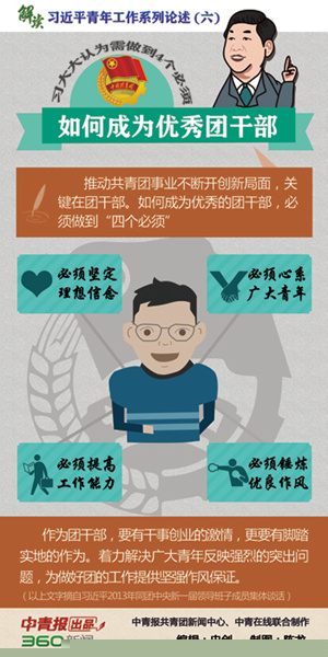 今日上线的第六篇解读,主题是“新时期如何成为优秀的团干部”。习总书记给团干部提出了“四个必须”,分别是坚定理想信念、心系广大青年、提高工作能力、锤炼优良作风。本篇解读还配发了高校团干部到基层挂职的成长故事。