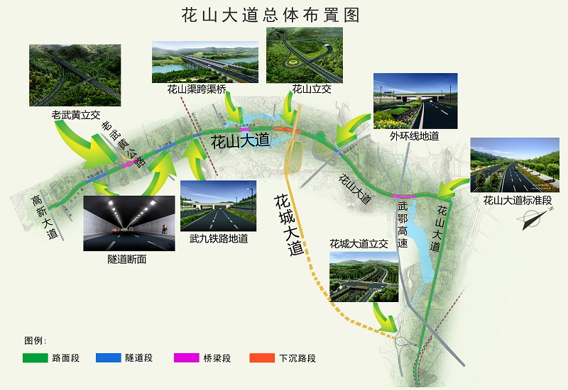 图为:从老武黄立交俯瞰花山大道