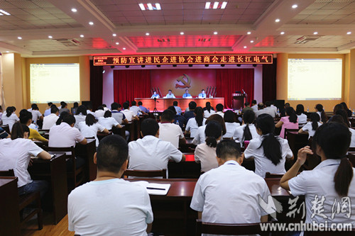 荆楚网消息(通讯员叶书兰)近日,武汉市检察机关预防宣讲团团长陈正军率团走进长江电气,开展了一场深入浅出、发人深省的法制宣讲,公司班组长以上干部参加了会议。