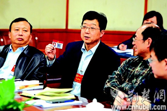 图为:市政协委员孙惠勇在政协武汉市十二届三次会议第六组(农工)小组讨论会上发言。(记者 李溪 摄)
