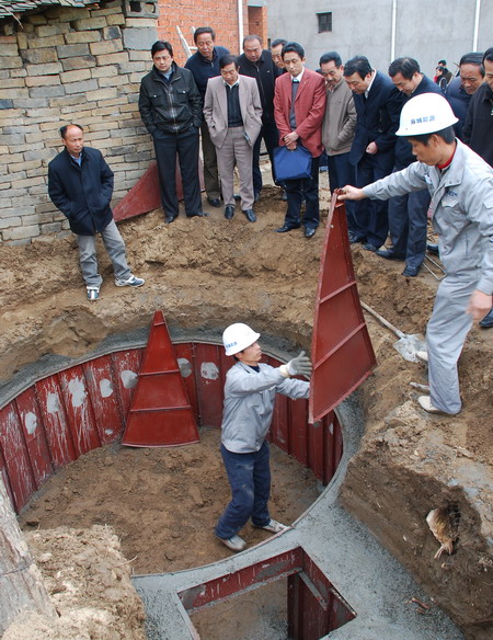 砖模建设沼气池现场