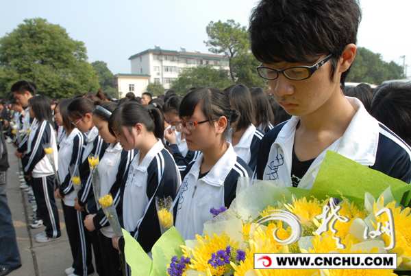英雄母校——长江大学的学子用鲜花特制成花环,摆放在灵堂外面,现场气氛无比伤感。