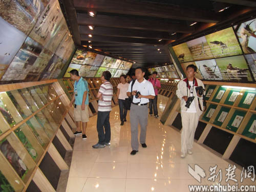 在这里,采访团成员看到,保护区湿地自然景观如塔头苔草沼泽、淡水沼泽、芦苇床、草地等复原景象与湿地动物标本都栩栩如生地陈列在安邦河湿地宣教基地里,凸显了位于双鸭山市的湿地景观特色;文化长廊、野生动物救护站、莲花湖、水上码头、垂钓场、观鸟台、茶楼等景点的设计,使采访团成员仿佛置身于自然生态的湿地景观带中。