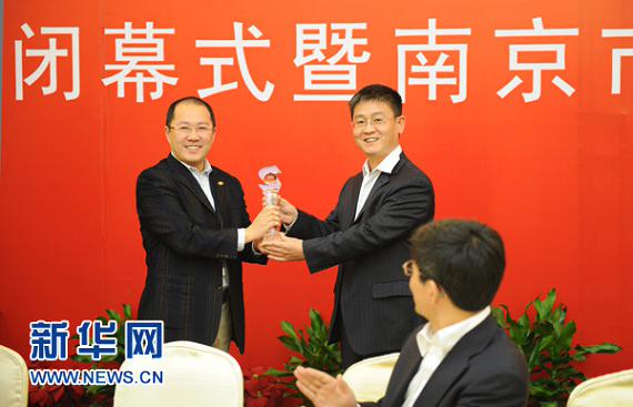 | 图为中国网络媒体论坛第十届承办方与第十一届承办方交接仪式。(右为人民网总裁廖玒) |