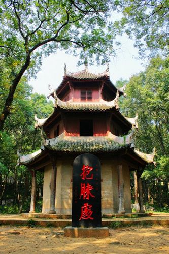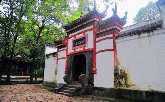 武侯祠是祭祀诸葛亮的祠宇,位于隆中山腰。始建于东晋,历经隋、唐、宋、元、明、清历、民国都有维修。在大门上方刻着几个大字“汉诸葛丞相武侯祠”,两边还有“掀天,揭地”四个字,喻意着诸葛亮出山后辅佐刘备,使东汉末年群雄割据的混乱局面发生了翻天覆地的变化,并最终形成了三足鼎立之势。武侯祠门前楹联是:“冈枕南阳依旧田园淡泊,统开西蜀尚留遗像清高”。