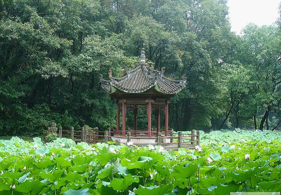 “予独爱莲之出淤泥而不染,灈清涟而不妖,中通外直, 不蔓不枝,香远益清,亭亭净植,可远观而不可亵玩焉”。荷花池是清朝光绪九年(公元1883年),湖北提督程文炳维修隆中诸葛亮故居时在躬耕田上开方池种莲藕而得名,池中立风荷伴月亭。民国二十二年(公元1933年),刘骥组织人员进行过一次整修。1983年,隆中风景区对荷花池进行了一次改造,清除了淤泥,四周堆砌山石,并种植荷花数种,给隆中风景增添了色彩。亭亭玉立的荷花,嫩蕊凝珠,盈盈欲滴,清香阵阵,沁人心脾。静静的池面上布满了碧翠欲滴的荷叶,像是插满了密密麻麻的翡翠伞似的,把池面盖的严严实实。每一年的春夏,这里的荷花开放时节总能吸引各地游人前来观赏。