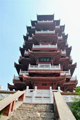 腾龙阁位于隆中山之巅,从外观看,它是外五内九的建筑。腾龙阁在五代时称为致远阁,致远阁历经宋,元。因地处隆中山顶部,维修多有不便,到了明代的时候,就只剩下残垣断壁,只能隐约见到基脚。因此,明代成化年间(公元1465-1487年)隆中十景形成之时,致远阁并未列入其中。到了康熙年间,康熙皇帝对诸葛亮倍加推崇。曾作《惟诸葛亮如此》一文,荆襄观察使蒋心岂对武侯祠进行维修的时候,已损坏的致远阁也得以修复。因诸葛亮号称”卧龙”,又从隆中出山,所以改名为:腾龙阁,意喻着诸葛亮从隆中出山并腾飞。1998年,隆中风景区对腾龙阁进行重新维护和加固,在腾龙阁周围铺设了汉白玉围栏。使得腾龙阁这一标志性建筑,在隆中山山顶继续展示着卧龙腾飞的风采。
