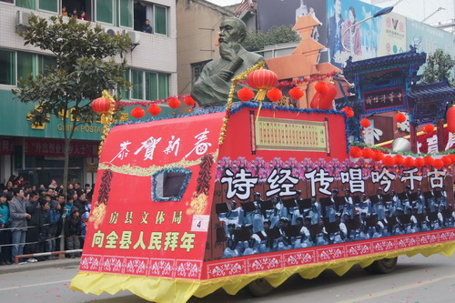 新华网湖北频道2月16日电(杨镇玮 李胜男)2月15日上午(农历正月十三),中华诗祖尹吉甫故里——湖北十堰市所辖的房县隆重举行规模盛大的“诗祖故里·魅力房县”春节文艺大游行活动,展演节目的队伍长达4公里,从四面八方涌来观看的群众达10万多人,房县县城沉浸在一片万众欢腾喜庆新年的和谐吉祥气氛之中。