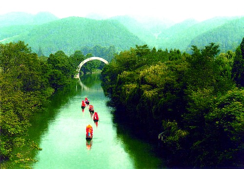 清江 古名夷水,又名盐水。土家的母亲河。"水色清明十丈,人见其清澄,故名清江"。她发源于鄂西利川市龙洞沟,流经恩施、长阳、巴东,在枝城注入长江,全长423公里,有"八百里清江美如画"的盛誉。随着隔河岩、高坝洲、水布垭水利枢纽工程的兴建,在清江流域内形成386万亩的亦江亦湖的奇妙自然景观,两岸独特的喀斯特地貌,峰峦叠嶂,直刺苍穹,湖内数百翡翠般的岛屿星罗棋布、灿若绿珠。如黛江水烟波浩淼,高峡绿林曲径通幽,清江集雄、清、秀于一身,风光之神奇清秀,无与伦比。沿途名胜古迹有恩施连珠塔、大龙潭、利川太平塘摩崖石刻、腾龙洞、叶挺囚居旧址、中共鄂西特委旧址等可供观赏。