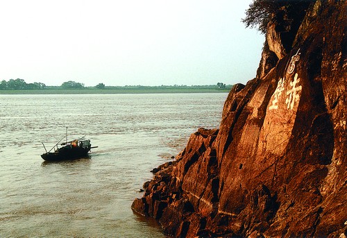 文赤壁·武赤壁 湖北有文武赤壁之说,文赤壁位于黄州,是因苏东坡在此吟颂了千古绝唱《念奴娇·赤壁怀古》而著名;武赤壁位于赤壁市(原蒲圻市),是三国时期著名的赤壁大战的遗址。文赤壁地处古城黄州西北汉川门外,玉屏山、龙王山、聚宝山紧护其东北,长江环绕其西南。由于北宋著名文学家苏轼于此写了传颂千古的前后《赤壁赋》,而命名为"东坡赤壁"或"文赤壁"。这里的风景名胜令游人赞叹不已,其珍贵之处是那琳琅满目的历代骚人墨客留下的书画碑刻。苏东坡的《景苏园帖》碑刻,其字如江河流泻,是苏轼书法作品中不可多得的珍品,被人称为"国中之宝",书法评论家认为可与王羲之的《兰亭序》、颜真卿的《祭稿》相媲美,被世人推崇为"天下第三行书"。苏轼嵌于坡仙亭内的草书《念奴娇·赤壁怀古》,其字笔势苍劲,如暴风骤雨,飞动圆转,与其词章的豪放风格,相得益彰。碑阁内还有苏轼手书的《赤壁赋》石刻,历代书法鉴赏家对此评价极高。这里保留有苏轼的画作两幅:一为《月梅》,一为《寿星》,均嵌刻于坡仙亭内。《月梅》画面,由半镰新月和一枝老梅组成,老梅虬枝苍劲,嫩枝秀逸,花蕊初吐,于清凄中露出一缕新机。《寿星》画面,以"德、寿、殿、宝"四字组成,作于北宋绍圣二年(1095年)四月,据说是我国迄今所见的最早的一幅人物漫画。黄州赤壁除苏轼书画碑刻之外,明代郭凤仪于嘉靖年间所画的《东坡老梅》,也极为珍贵。武赤壁位于赤壁市西北36公里的长江南岸,隔江与乌林相望。陆水由其东注入长江。武赤壁是著名的古战场,东汉建安十三年(208年),刘备与孙权联合,大破曹操于此,这就是历史上有名的赤壁之战。赤壁遗址是由三座小山组成,即赤壁山、南屏山和金鸾山。这三座小山起伏相连苍翠如海,再加上亭台楼阁错落地隐现于其间,景色益显秀美。其主要景点有赤壁摩崖、拜风台、凤雏庵和翼江亭等。赤壁山的西南临江处,岩斜亘300余米,怪石嶙峋,汹涌的江水直扑断崖,卷起千堆雪,声如巨雷。文人骚客来此凭吊者,自古不绝,故留下众多书法。赤壁矶头的断崖上刻有"赤壁"两个楷书大字,二字的近旁,还有诸葛亮、刘备、关羽和张飞的画像石刻。南屏山顶的拜风台,传为诸葛亮祭东风时的七星台遗址。金鸾山腰的凤雏庵,相传庞统曾隐居于此。原庵早废,今庵乃清道光二十六年(1846年)重建,青砖黑瓦,古朴典雅。庵内主室所供奉的庞统塑像,庄严刚毅,有凛然不可侵犯的气概。庵四面苍苔布绿,曲径藏幽,古树垂荫,百鸟飞鸣,真有"鸟鸣山更幽"的意境。赤壁山顶的翼江亭,传为诸葛亮、周瑜在赤壁之战时观望曹营的遗址。亭为后人所建。