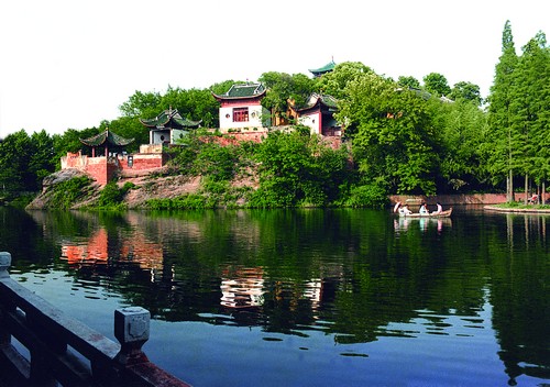 东湖 位于武汉市武昌东郊。取其方位命名为东湖风景区。是国家重点名胜风景区。由郭郑湖、水果湖、喻家湖、汤湖、牛巢湖五个湖泊组成。总面积88平方公里,其中湖面33平方公里,是杭州西湖的6倍。东湖烟波浩淼,碧水粼粼,水鸟翻飞,游船如织,湖岸曲折,港叉交错,素有九十九湾之称。游览区域分为听涛、磨山、落雁、白马、珞洪、吹笛六大景区。点缀其间的景观有泽畔行吟、碧潭观鱼、水天一色、曲堤凌波、湖光浮阁、朱碑耸翠、雪海香涛、翠帷蕴谊、常春花苑等。