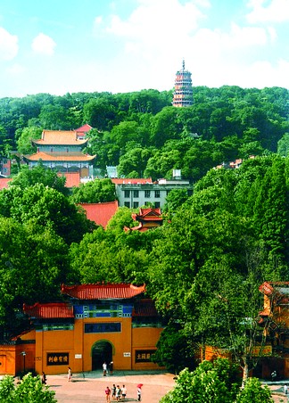 宝通禅寺 位于湖北武昌洪山南麓。始建于南北朝。一名东山寺,又名弥陀寺。明成化二十一年(1485年),由宪宗皇帝敕赐"宝通禅寺"名。历史上的宝通寺多次被毁,现存建筑为清同治年间(1865-1879)重建,规模宏伟,坐北面南。殿宇建筑依山就势,占地约10万平方米,建筑面积6600平方米。寺内尚存有南宋嘉靖年间所铸大铁钟两口,弥勒殿前仍保存明初石雕大狮子一对。后山有多株古松,相传是南宋民族英雄岳飞在武昌驻军时亲手所植,名为"岳松"。寺院东北面的洪山南坡上有一座宝通塔,是元代时为纪念灵济慈忍大师而修建命名的,俗称"洪山宝塔"。现寺院与宝塔均恢复一新,已对游人开放。