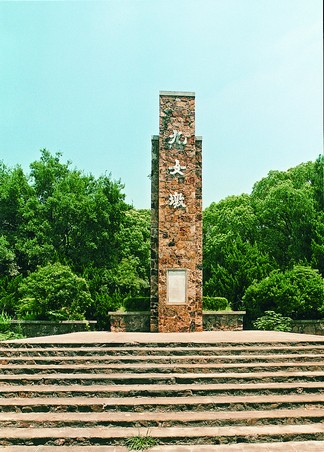 九女墩 位于武昌东湖的西北部。其地为一小山丘,湖水环抱。九女墩位于小山丘的顶端,呈长方圆角形,长13米,宽4米,高约2.5米,上覆青草。相传,1856年太平军中九位女英雄与清军激战中牺牲于东湖岸边,当地群众把她们合葬于此,为避清军破坏,故避称墓而名"墩"。1952年,武汉市人民政府在此建墓立碑,碑为花岗石砌成,高8余米,顶端悬挂着6个铜铃,风吹铃响,犹似烈士英灵奔驰战场金戈铁马的激战声,碑的正面有董必武、宋庆龄、郭沫若、何香凝、张难先等名人的碑文。九女墩周围树林繁茂,左侧有一片平坦的草坪,建有"可歌亭",意为九女英烈,可歌可泣。1956年被湖北省定为省级文物保护单位。