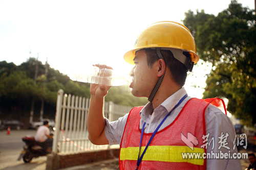 荆楚网消息(记者石倩、谢翔 摄影王唯翀 实习生方洁、杨小雪)当你我在享受空调的凉爽时,可曾想到,高温下,有人顶着烈日坚守岗位,有人不顾酷暑辛勤劳作,有人在为我们的城市建设付出汗水……