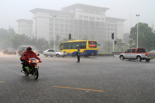 去年5月7日下午5时许,我市上空乌云密布、雷电交加、狂风大作,瞬间大雨倾盆,因团城山桂林路变压器故障致使沿线停电,市政府等路口交通信号灯停止运行,由于该路口本身车流量就很大,加之正值下班高峰,南来北往的车辆更是拥挤在一起,行车十分缓慢,交通即将出现严重堵塞。此时,正执勤经过此路段的开发区大队副大队长王志坚当即停车跑向市政府路口中间,站岗指挥交通,由于事发突然,他没时间换上雨衣,大雨瞬间将他从头到脚浇得个透湿;雨下得太大,致使能见度不足10米,为了让驾驶员安全驾车通过路口,他一面用手势指挥,一面大声喊话,引导车辆通行。风雨中王志坚指挥交通的身影感动着过往行人和驾驶员,过往的司机、乘客和行人纷纷向他投来敬佩的目光。经过半个多小时,仿佛是被王志坚的行为所深深感动,风也停了、雨也小了、电也来了,信号灯恢复了运行,交通也恢复了正常。为此,被一路人抓拍到王志坚冒雨指挥交通的照片在互联网和各新闻媒体纷纷转载,并取得良好社会效果。