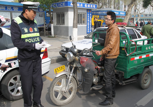熟悉李白杨人都知道他执法严格、公正、文明,并且刚柔相济、宽严适当。2009年8月的一天下午,正在中天街执勤的李白杨见两名男子未戴头盔,骑着一辆无牌照的摩托车,往向东桥方向逆向行驶,李白杨当即将车拦下,示意驾驶人出示证件,可驾车人掏了半天也没有掏出驾驶证和行驶证,便谎称是借得别人的车,急着送人到车站去的。李白杨根据所掌握的无证驾驶、逆行、不戴安全头盔等违法事实,决定暂扣其车辆。该驾驶人先是说好话,说是急着送人到车站,求李白杨放他一马。见李白杨态度很坚决,那人马上翻脸抖狠,并用让李白杨“过不成年”、“等着瞧”等狂言进行威胁。可李白杨不惧威胁,依然要求暂扣车辆。那位驾车人不仅不交摩托车钥匙,而且还恶意拨打市长专线电话投诉交警非法扣车,同时还用污秽的语言辱骂李白杨。面对这种情形,李白杨努力克制自己,十分冷静地说服教育当事人。最后,他在其他民警的配合下扣押了该车,接着用自己的摩托车将那位急需赶车的外地人送到了车站,然后配合大队法制科依法对违法人给予行政拘留15日的处罚。