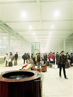 图为:乘客在站台焦急地等待(图片由网友柯齐提供)“车顶火光四射,浓烟四起”,前晚,北京西至武汉站的动车D2031在信阳段发生故障,致使千余旅客滞留。之后,乘客全部转乘高铁于昨日凌晨2时许回到武汉,比动车正常到站时间晚了3个多小时。昨日,武汉铁路部门回应:动车D2031前晚确实发生故障,系因严重雾霾引发“雾闪”,导致动车断电。