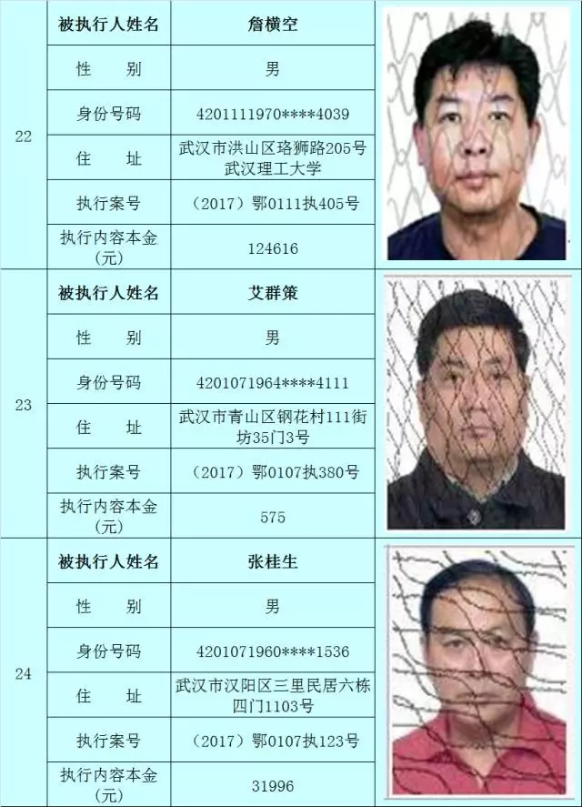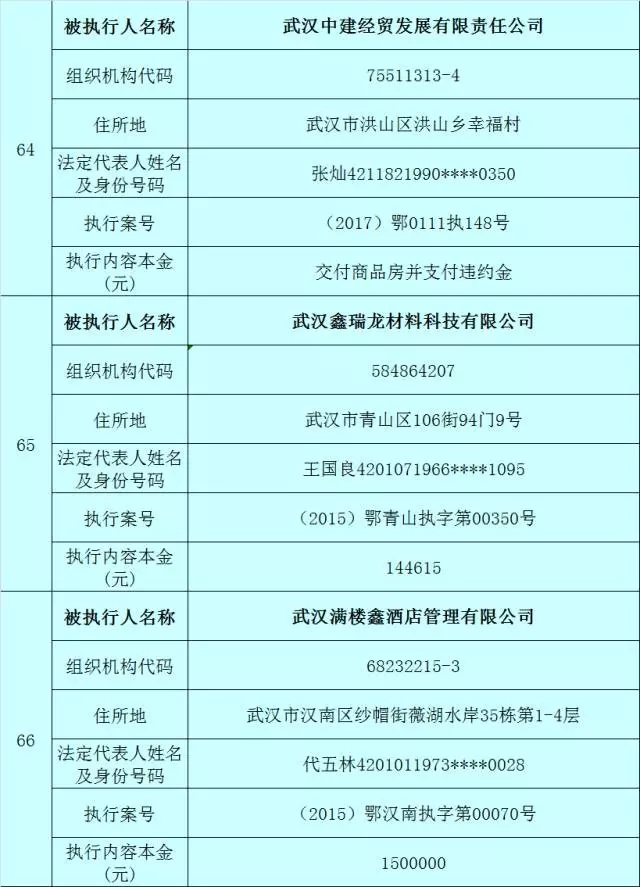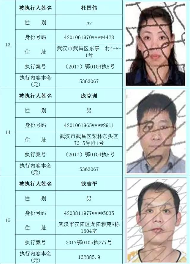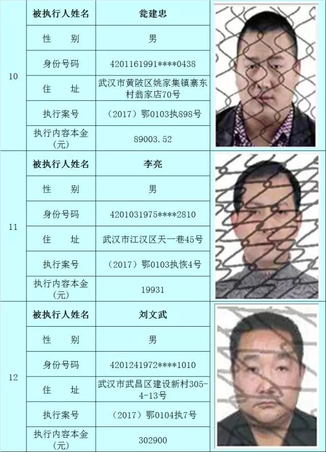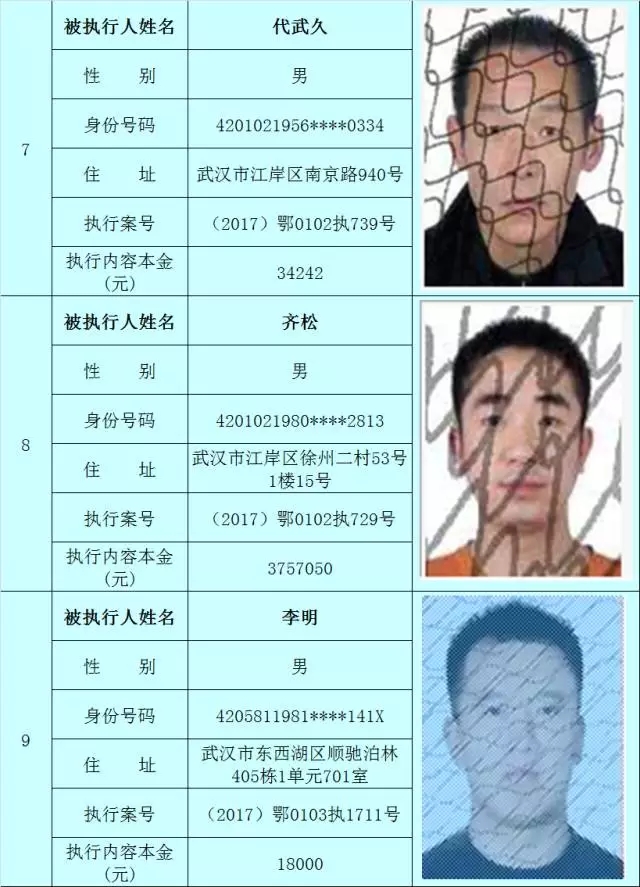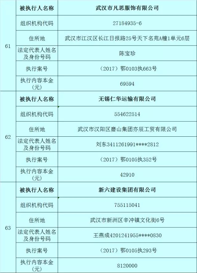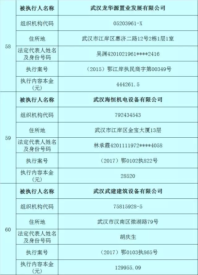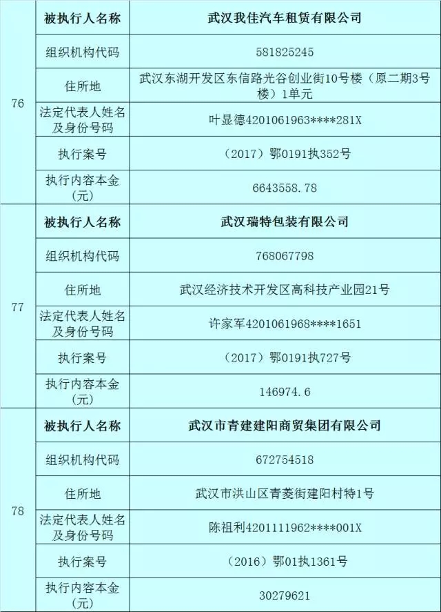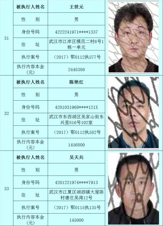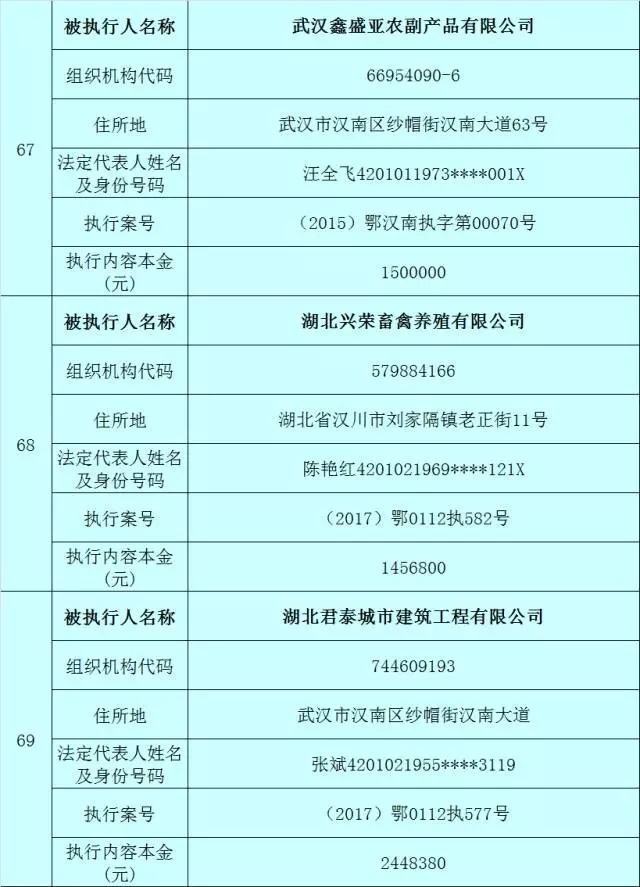 附:武汉法院2017年第3批失信被执行人名单