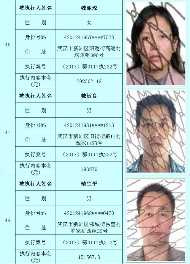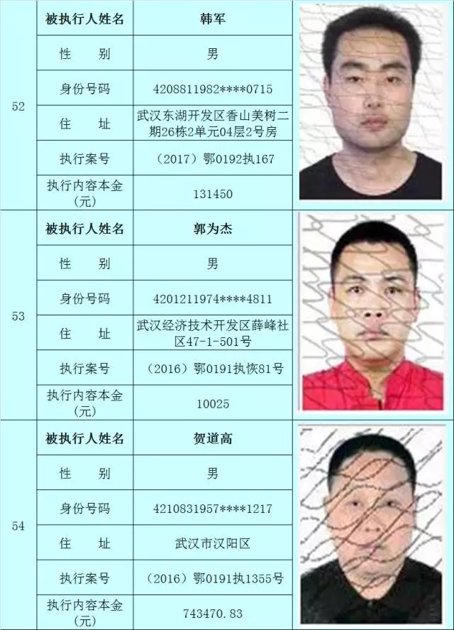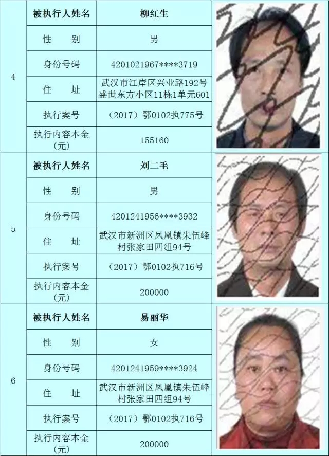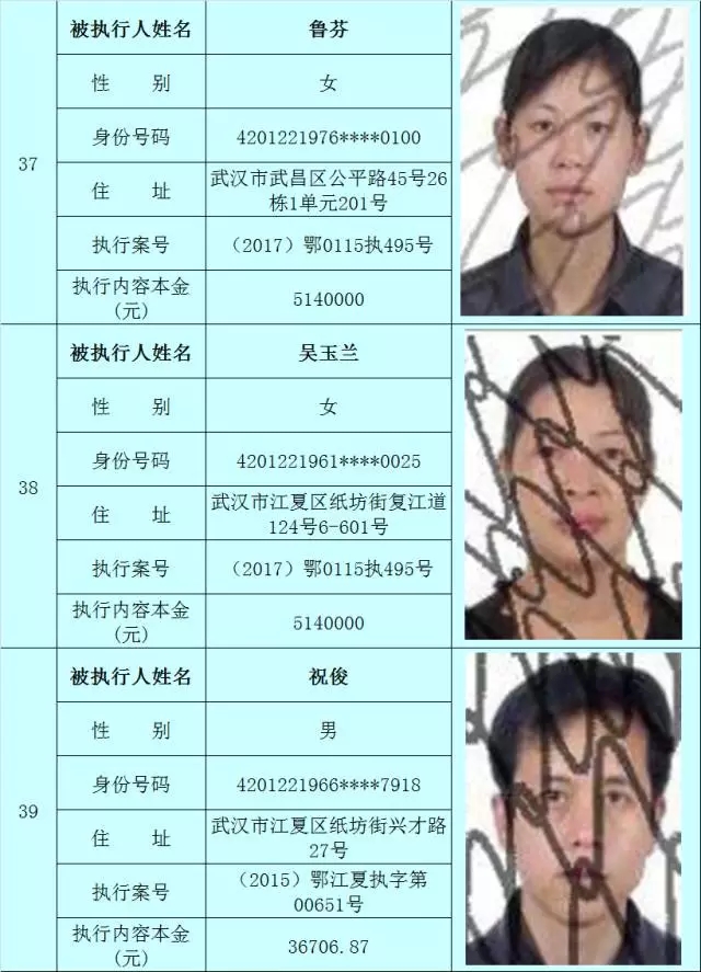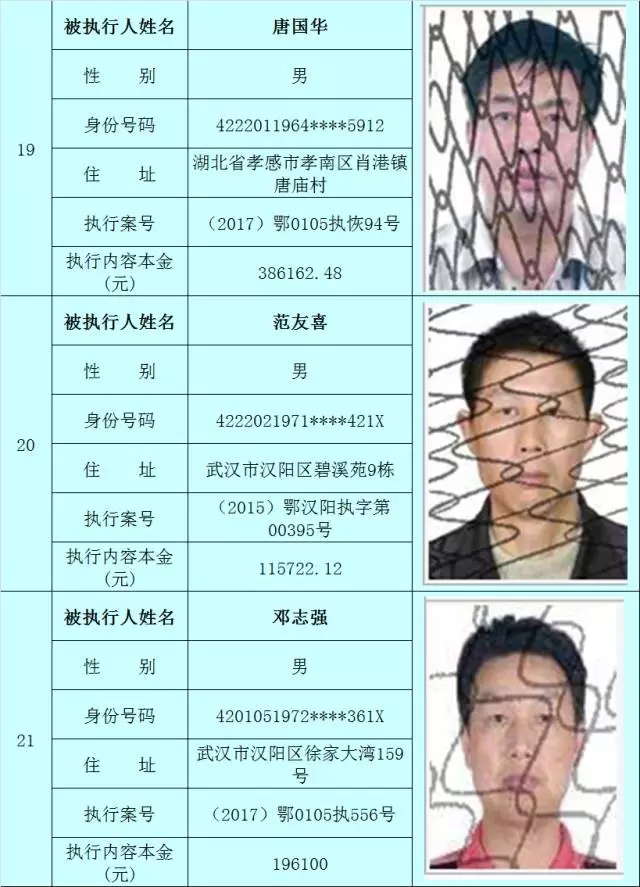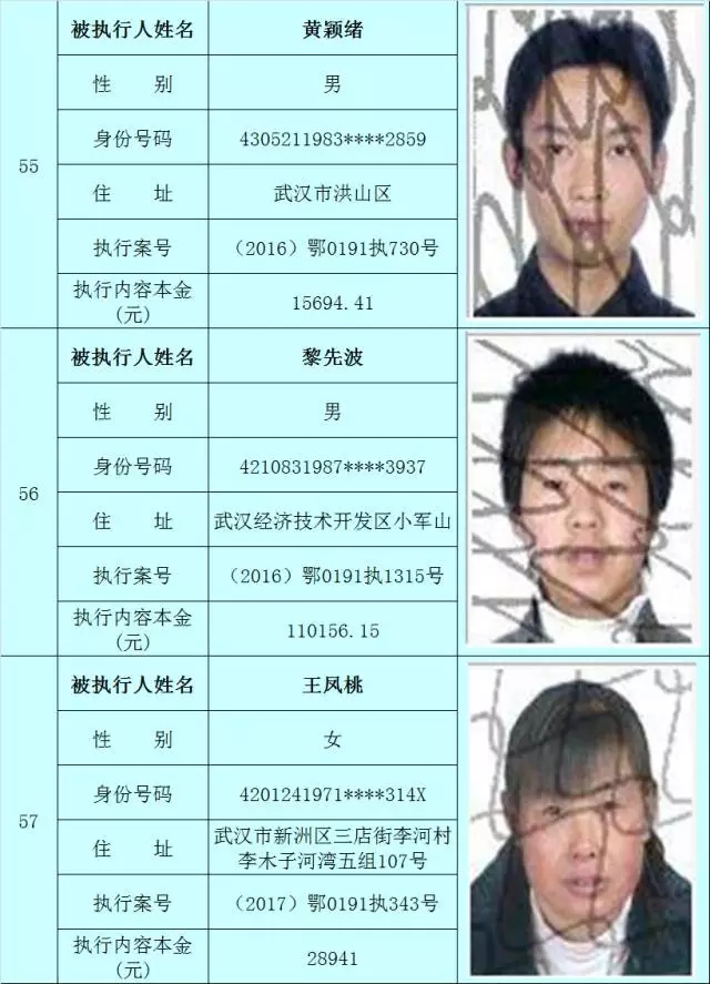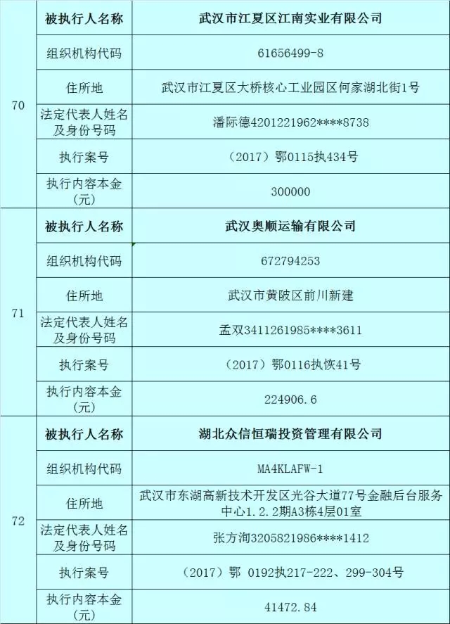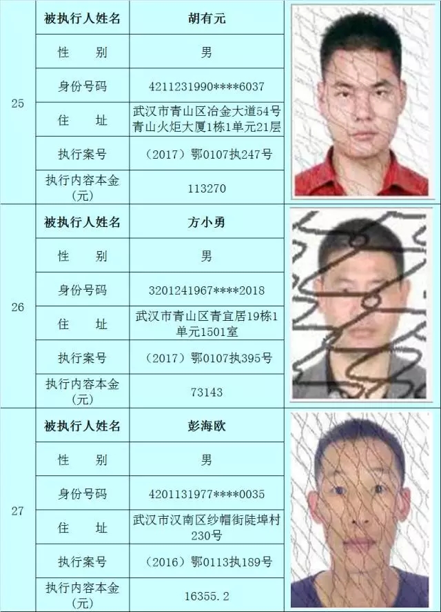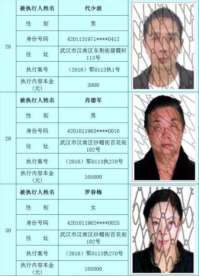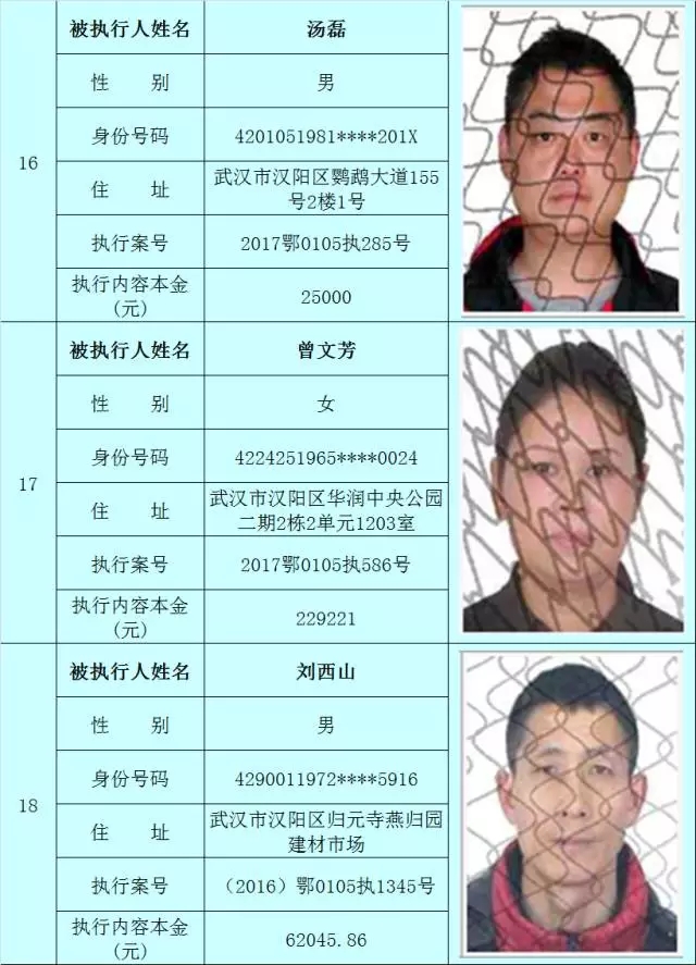 附:武汉法院2017年第3批失信被执行人名单