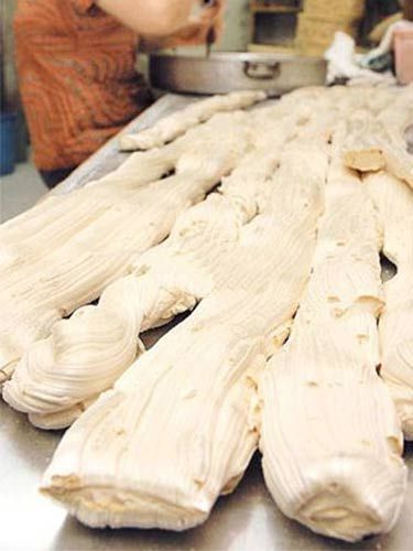 做法:糯米浸泡一夜,水磨打成浆水,用个布袋装着吊一个晚上,待水滴干了,把湿的糯米粉团掰碎晾干后就是成品的糯米粉。