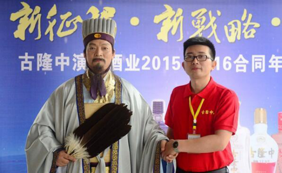 (古隆中演义酒业董事长郭力和“诸葛亮”在现场合影张平摄)