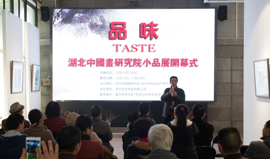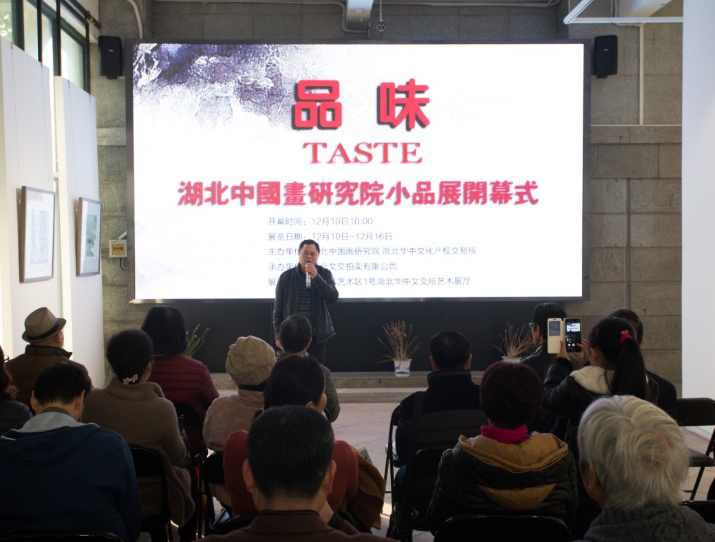 12月10日上午,由华中文交所和湖北中国画研究院共同主办的“品味——湖北中国画研究院小品展”在华中文交所一楼艺术展厅隆重开幕。此次展览共展出蒋昌忠、何忠群、孔奇、毛宗泽、张金林、谈先施等24位艺术家共48件作品,题材多样,风格迥异,传统与现代交相辉映,现场吸引了众多艺术爱好者和藏家前来观赏。