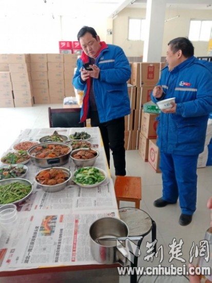 这桌丰盛的团年饭,都是杨兵和同事们亲手烹饪的