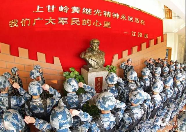 每当新兵下连,大家都在黄继光的铜像前宣誓;老兵退伍时,要在铜像前摘下帽徽和肩章,郑重地举行告别仪式;部队外出驻训时,官兵们也要在铜像前宣誓:“发扬黄继光英勇献身精神,誓死完成任务!