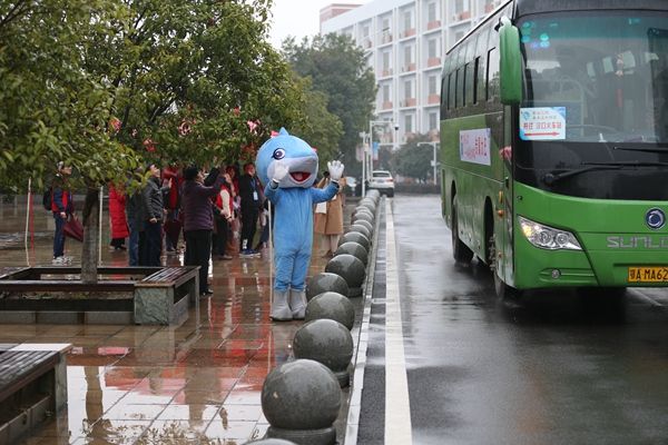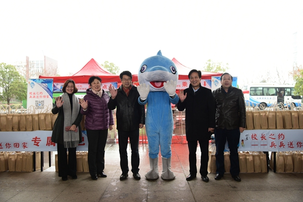 1月9日下午2时,三辆“兵兵送你回家”大巴从武汉商学院启程,载着近百名返乡学生开往武汉站和汉口站。坐在舒适温暖大巴中的同学们与前来相送的兵兵、校领导和老师们挥手告别。