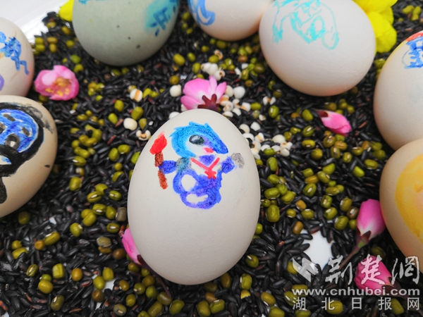 "哇,这个兵兵真是太棒了。"人群中该校外国语学院的徐瑞梅手中诞生了全场第一个最"还原"的兵兵。谈及画兵兵的技巧,徐瑞梅开心地说,"先用蜡笔画兵兵的轮廓,再用水彩笔涂它的颜色,重点是提前确定好兵兵的头、双脚和火炬三者的位置,画起来就很容易了。"随着时间推移,一个又一个"兵兵"绘声绘色地出现了鸡蛋上,不少学生还对兵兵的造型进行了再创新。"我给兵兵系上了领带。"方晨举着手中的鸡蛋介绍,"春节期我见到了穿着唐装的兵兵,这次我想给兵兵一个更'绅士'的造型。"还有其他学生将兵兵的另一只手中加上了国旗。"举着国旗的兵兵,我想这样才更接地气。"朱佳佳说。