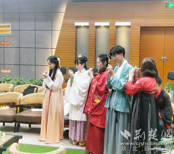 除此以外,吃青团、品香茗、飞花令、听讲座也成为活动的一部分。不少大学生身着汉服参与活动,武汉商学院高静教授在现场讲座分享了春分的由来,并寄语在场学生:"春日蕴希望。趁着春日多读书、读好书,在春天播下读书的种子,在未来收获知识的财富。"