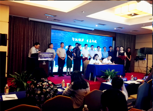 武汉市科技成果转化局副局长胡军、硚口区人民政府副区长叶祯祥、硚口区政协副主席肖军生以及区科技局等科技成果转化领导小组成员单位负责人、街道分管领导及辖区高新技术企业、园区企业、武汉高校代表、投融资机构嘉宾及媒体代表近150人齐聚一堂。活动现场,武汉刑仪新未来电力科技股份有限公司、湖北金穗长丰粮食机械设备有限公司、武汉深海蓝科技有限公司、武汉海慧特装科技有限公司等分别与高校院所签订项目合作协议。