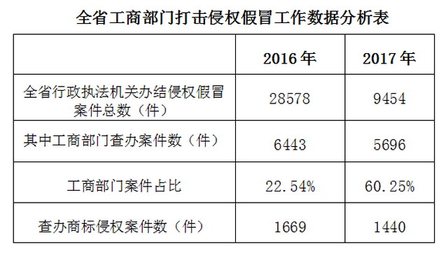 【导语】2017年度,全省工商部门坚持“两个一流”工作目标,以“打击侵权假冒执法年”行动为指引,以“双打双月”行动为主线,突出重点商品、重点区域和重点品牌,先后开展“茅台”“周黑鸭”“毛铺”等专项保护行动,各地各级工商部门依法履职强化监管,不断提升打击侵权假冒监管效能,优化营商环境、服务经济发展取得显著成效。全年全系统共查办侵权假冒案件5696件,案值5207.86万元;其中查处商标侵权案件1440件,案值1112.92万元;案值5万元以上的侵权假冒案件162件。根据国家工商总局通报,2017年上半年,湖北省工商部门立案和办结案件数均居全国第二,我省“打击侵权假冒执法年”、政企联手“订单式打假”、《湖北日报》“工商打假进行时”专栏宣传等工作得到总局肯定。2017年12月,全国工商和市场监管部门商标行政执法工作座谈会在湖北黄石召开,湖北省工商局在会上做经验交流发言。
