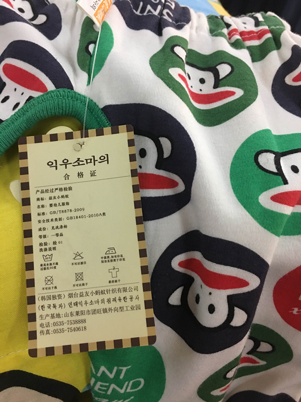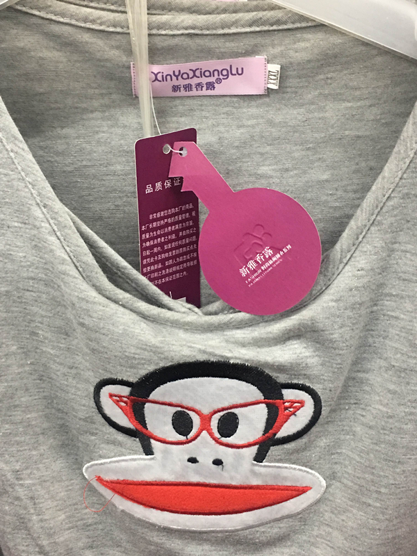 “大嘴猴”图案注册商标的商标注册人是保罗弗兰克实业有限公司,商标注册证第10065563号,核定使用商品(第25类),有效期自2004年03月07日至2024年03月06日止; “PAUL FRANK” 文字注册商标的商标注册人是保罗弗兰克实业有限公司,商标注册证第5269272号,核定使用商品(第24类),有效期自2009年06月28日至2019年06月27日止。宏联国际贸易有限公司是“PAUL Frank”品牌在中国大陆、澳门及香港地区的总授权商,其授权广州某知识产权代理有限公司在中国大陆区域内办理相关“大嘴猴”系列打假事宜。经鉴定人员对现场销售的标有“大嘴猴”图案与“PAUL FRANK” 文字的床上用品和家居服进行了拍照、对比、鉴定和识别,认定当事人销售的是假冒商品。经该公司出具的鉴定报告以及执法人员调查核实,当事人销售标有“大嘴猴”图案与“PAUL FRANK” 文字的床上用品和家居服行为违反了《中华人民共和国商标法》的有关规定。
