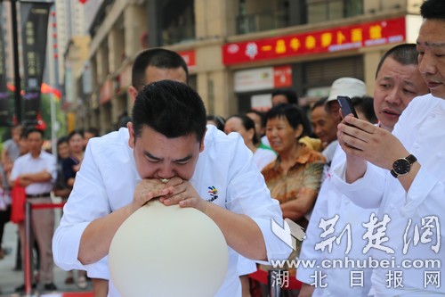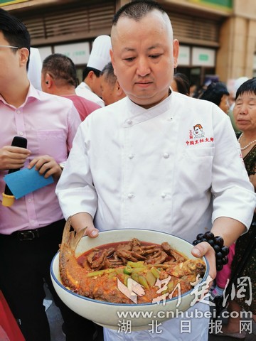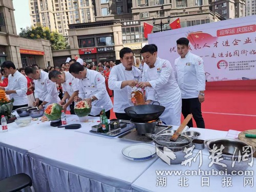 荆楚网客户端—荆楚网消息(记者徐蕾)在西瓜上面雕刻出来的玫瑰花和金猪祥瑞、从杀鳝鱼到装盘只需3分钟的大刀爆鳝花、拉到一人多长的龙须面、可以当成气球一样吹起来的面团,一道道精雕细琢的菜品在一群烹饪高手的手中一一呈现出它们最美的姿态,给现场的居民们带来了视觉与味觉上的双重盛宴。9月27日上午,“优秀技能人才进企业进学校进社区”湖北首场活动在武昌区杨园街临江社区隆重举行。该活动由湖北省人力资源和社会保障厅主办,荆楚网(湖北日报网)、邹志平国家技能大师工作室、武昌区杨园街临江社区承办。