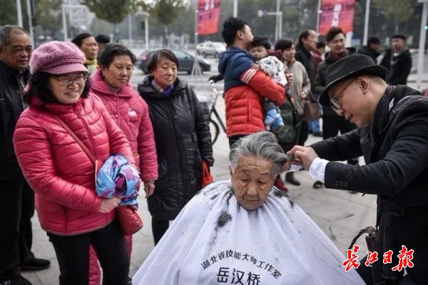 湖北卡丽诗美发美容培训中心美发大师为居民剪头发 记者任勇 摄