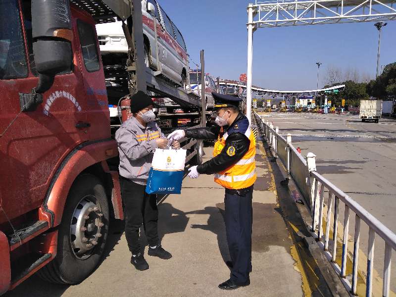 湖北高速路政为运输司机送上了食物和饮用水。图:何祚美