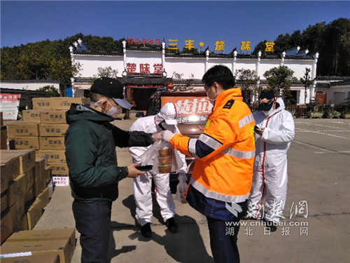路政人员为抗疫志愿者送去了热气腾腾的饭菜。