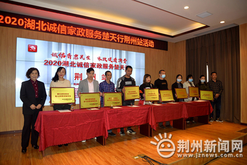 荆州新闻网消息(记者 杨辉 通讯员 田晓军)10月26日下午,由湖北省商务厅主办,荆州市发改委、荆州市总工会等单位协办的2020湖北家政诚信服务楚天行荆州站活动在市工人文化宫举行。全市33家家政服务企业、荆州市保洁家政协会全体会员单位和部分家政服务人员及消费者等近百余人参加了此次活动。