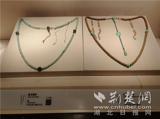 左:清 翠玉朝珠 右:清 迦南木朝珠