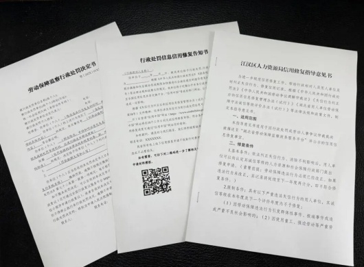 为助企合规经营,更好优化法治化营商环境,江汉区在全市率先推行劳动用工监管领域“三书同达”机制,即在向企业送达《行政处罚决定书》的同时,同步送达《信用修复告知书》和《信用修复指导意见书》,通过“一次送达、三书联动”,实现惩戒、指引、修复三者有机统一。在明确告知企业违法事实、处罚依据和结果基础上,说明信用影响及修复条件、流程和时限,提供针对性合规建议和整改方向,有效引导其主动纠正失信行为、履行法定义务、降低负面影响,促进“刚性执法”和“柔性监管”相统一,实现从“单一处罚”向“全过程指导服务”转变,提升综合执法质效。