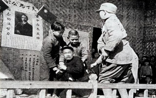 1938年,孩子剧团在武汉街头演出