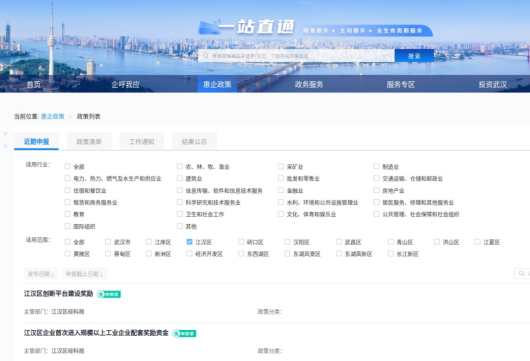江汉区在市企业服务“一站直通”平台上线“免申即享”惠企政策