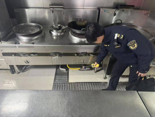 燃气安全同样是此次行动的重中之重。在武汉关小学和第十九中学,工作组深入学校食堂,使用专业检测仪器对燃气管道、阀门接口、灶具连接处等关键点位进行逐一排查,仔细检测是否存在天然气泄漏风险。执法人员还详细查阅了燃气设施日常巡查记录,并向食堂管理人员询问燃气使用操作规程及应急预案掌握情况,要求学校严格落实安全用气制度,定期开展自查自纠,确保校园用气安全万无一失。